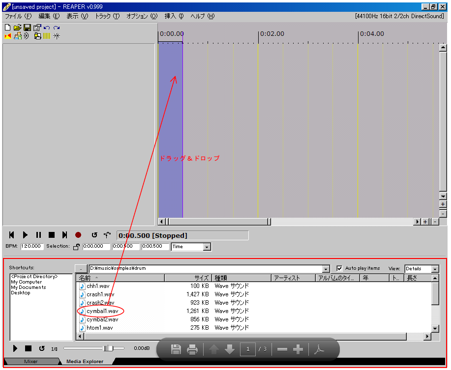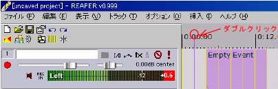 そして赤丸をダブルクリックしてカーソルをEmpty Eventの前にしたら録音を始めてください。