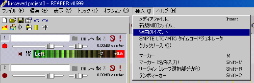まずオートパンチしたいトラックを選択したら"挿入"→"空白のイベント"を選択します。