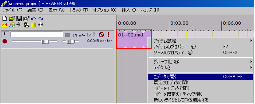 また、空白イベントを挿入しなくても、既に録音済みのメディアアイテムを右クリックして分割して、差し替えたい範囲だけを選択してオートパンチモードで録音すれば同様に必要な位置だけ差し替えることもできます。